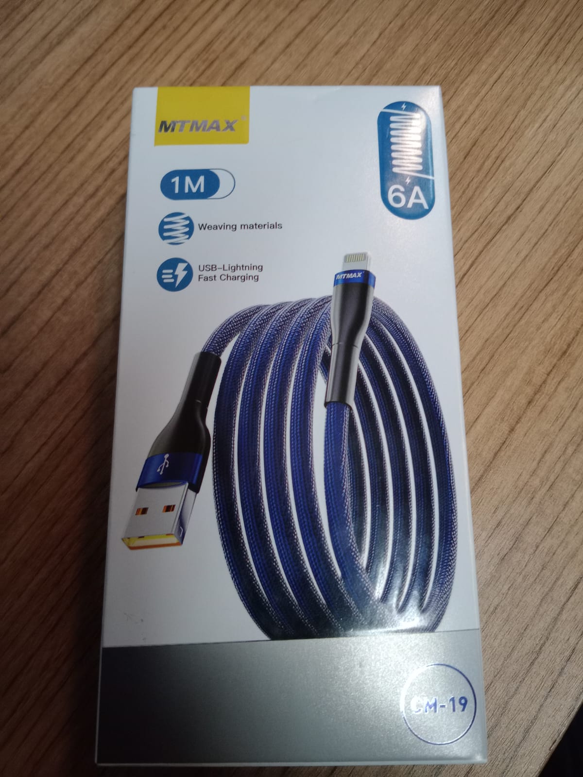 Cable USB a Lightning de marca MTMAX de 6A.